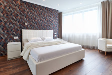 Квартира посуточно предназначена для комфортабельного проживания трех гостей. У нас не курят! Взимается страховой депозит. В комнате огромная двуспальная кровать, кондиционер, интернет, Wi-Fi, ТV, Кухня оборудована для приготовления и приема пищи. В ванной комнате душевая кабина, бойлер, чистые полотенца. Всегда чистое постельное белье и новые комплекты комнатных тапочек.